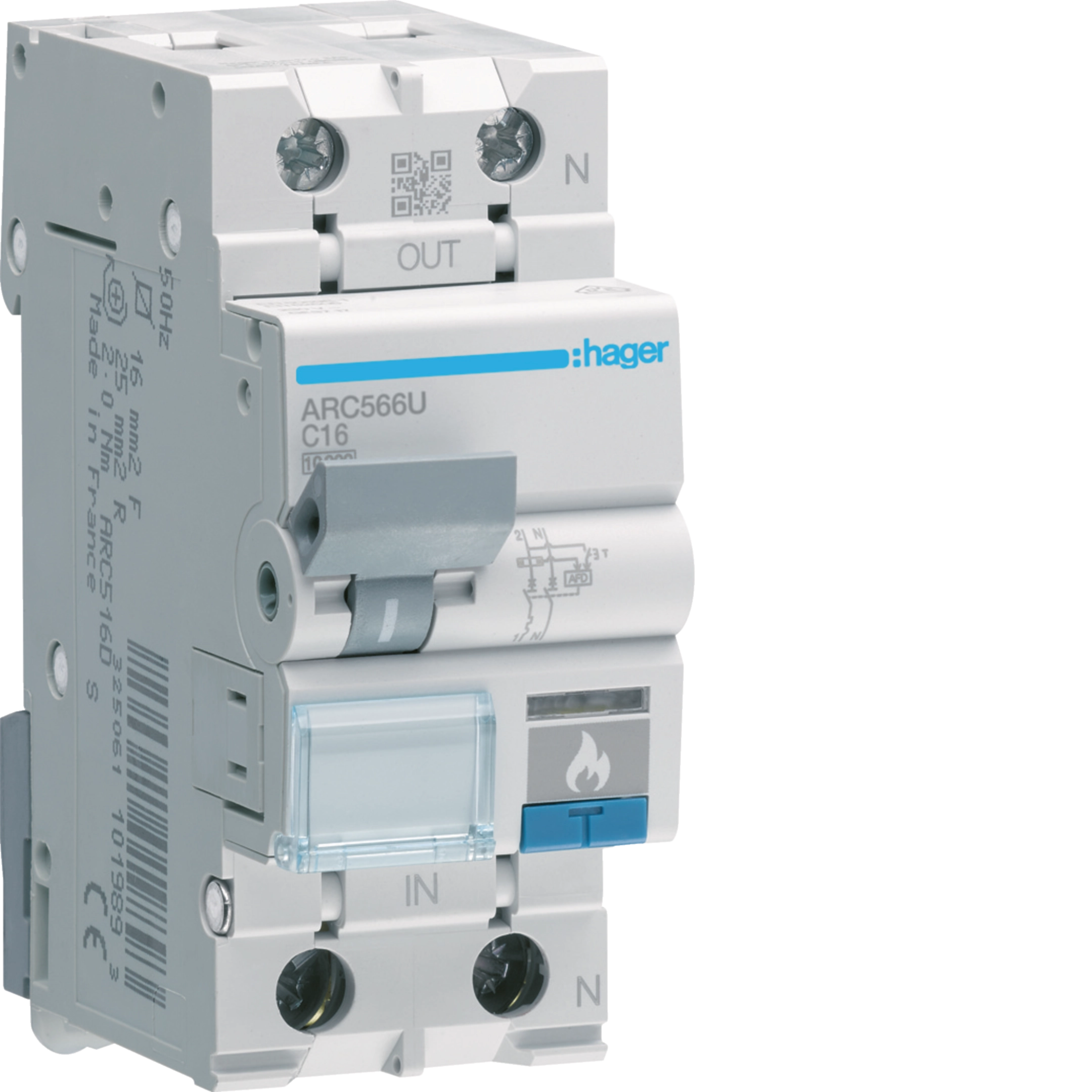 MCB with dangerous arc detection 1P+N 10kA C-16A 2M