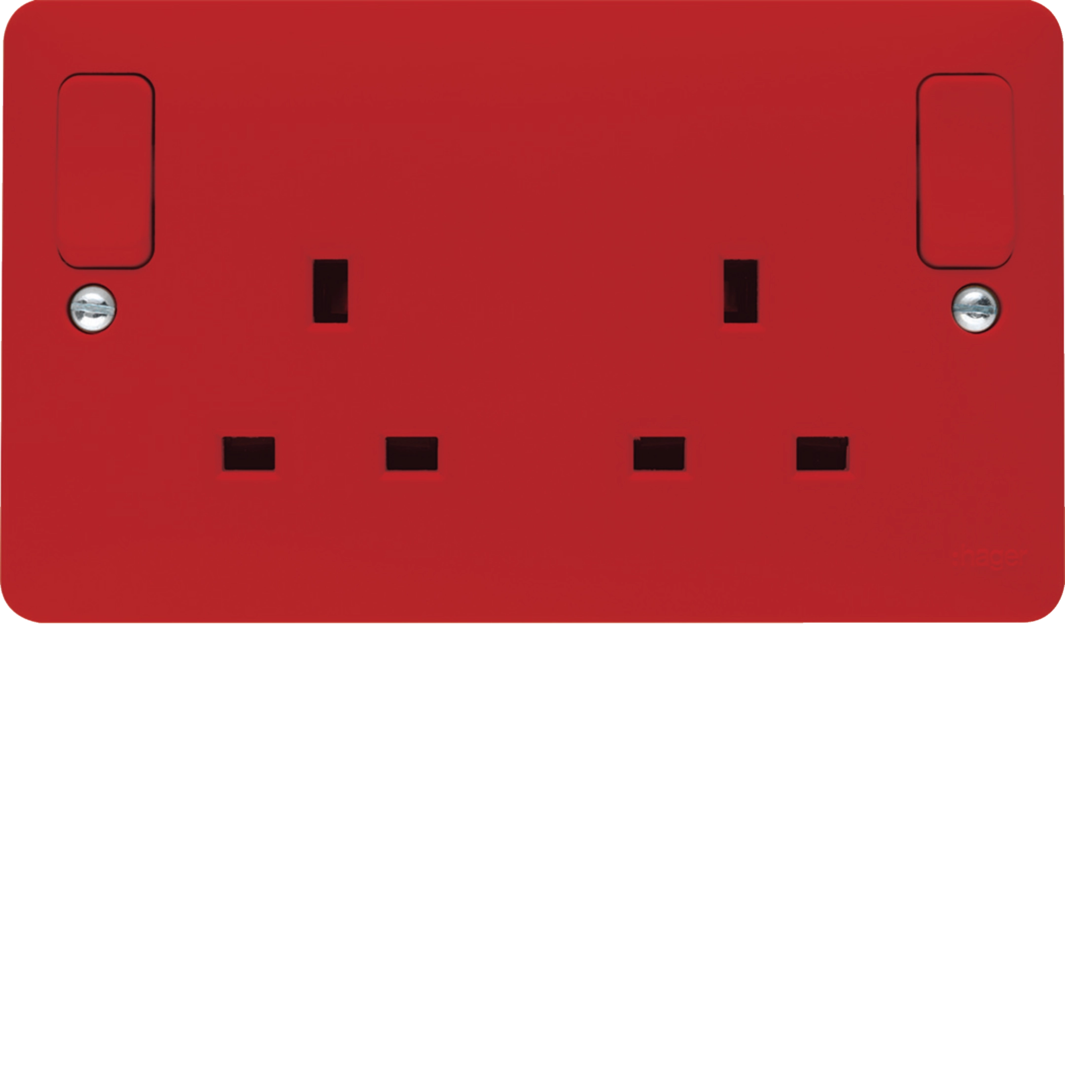 2 Gang Double Pole Switched Socket Dual Earth Outboard Red Face Plate & Rockers