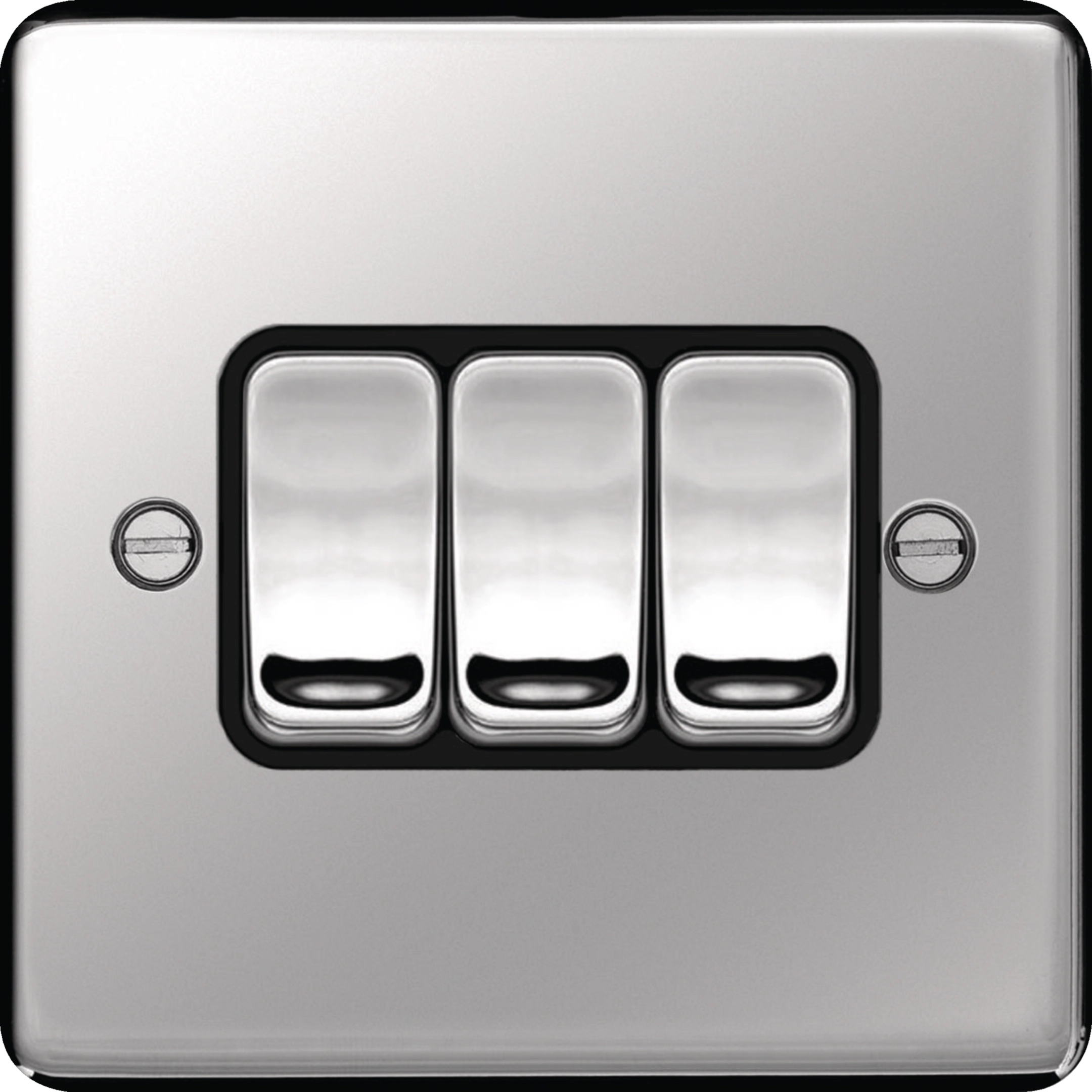10AX 3 Gang 2 Way Wall Switch Polished Steel Black Insert