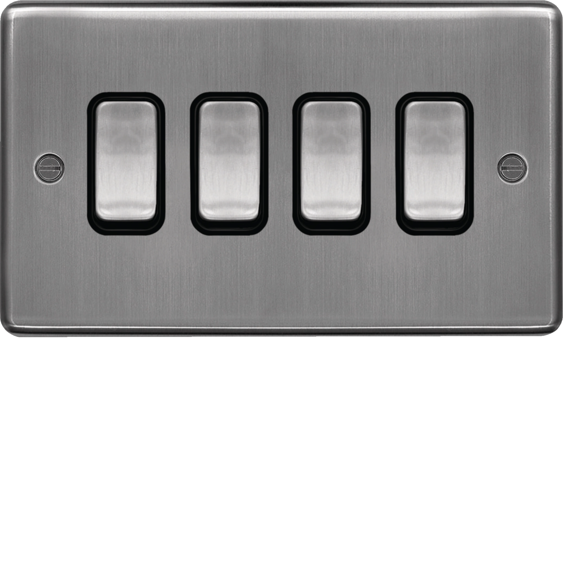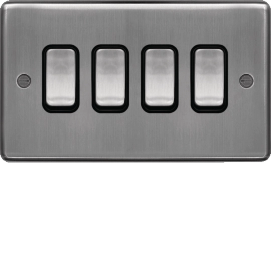 10AX 4 Gang 2 Way Wall Switch Brushed Steel Black Insert